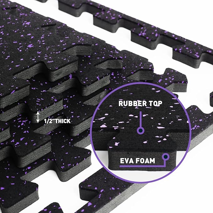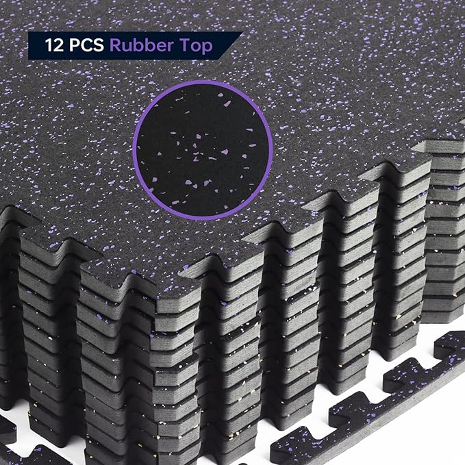 - Rubber Top - Better Choice for Home Gym: You will like the rubber top because the common EVA foam mats are too soft or flimsy for your home gym and all rubber fitness mats were too expensive. This double-layer mat is the perfect solution for working out at home, you will get the softness and affordability of the EVA foam with the sturdiness of the rubber layer on top