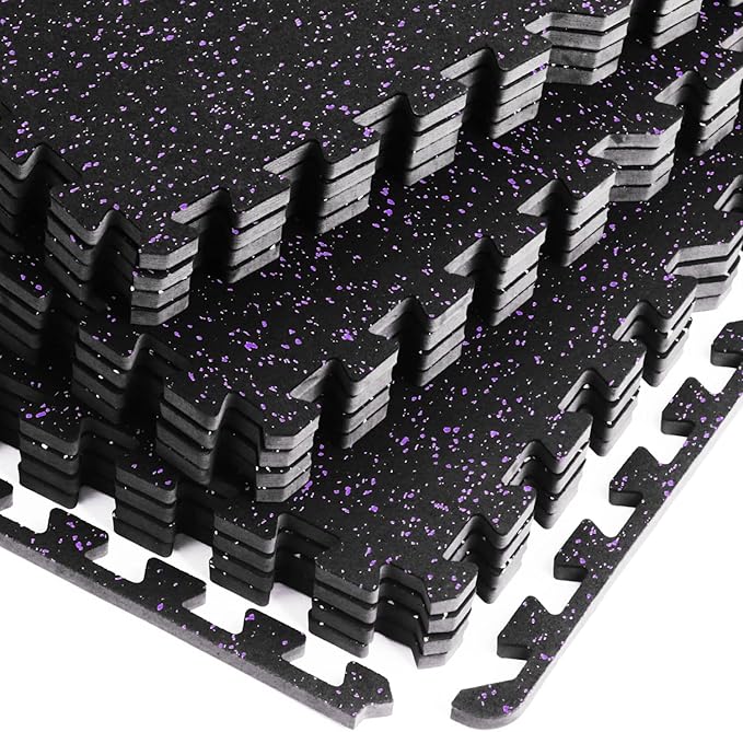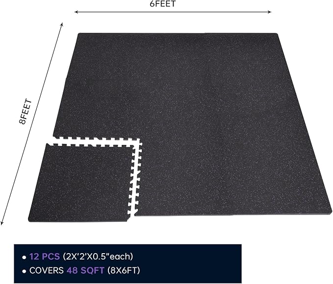 - Interlocking Puzzle Exercise Mats- Change Your Home to The Gym In Seconds: Each pack comes with 12 tiles(24" x 24" x0.56") and 24 borders to cover 48 square feet. Upgrade larger interlocking lock for grip together tightly. It was extremely easy to put together making a perfect workout and training space, just like being at the gym!