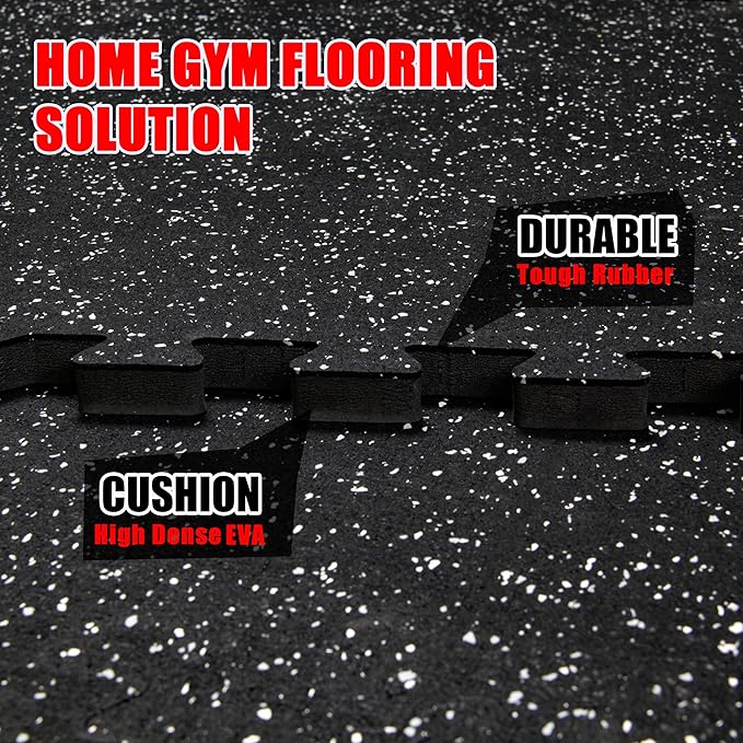 - THE ULTIMATE HOME GYM SOLUTION. Selecting the right floor material is crucial because it directly affects your workout effectiveness and comfort. Traditional floors might lack cushioning, increasing the risk of discomfort or injury. Abber Rubber-Top Composite Interlocking Mats are an ideal solution, combining the softness and cushioning of EVA with the durability and tear resistance of rubber. Whether you’re into yoga, cardio, or weight training, these mats cater to all your needs.