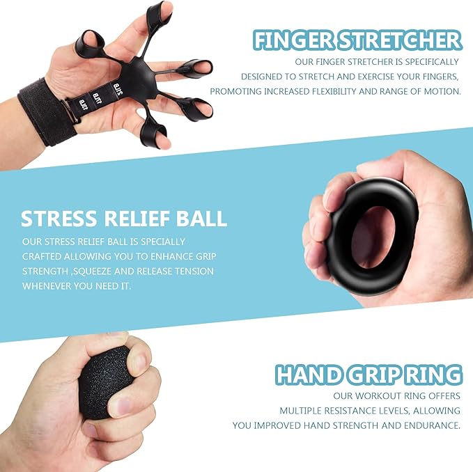 - 【For Fitness & Sport Enthusiasts】- This grip trainer kit enables strength training, rehabilitation, sports conditioning, and stress relief. A strong grip is crucial for performance in weightlifting, rock climbing, martial arts, tennis, golf, wrestling, and baseball. Additionally, musicians, especially guitarists, pianists, and drummers, office workers, and seniors can also benefit from using it.