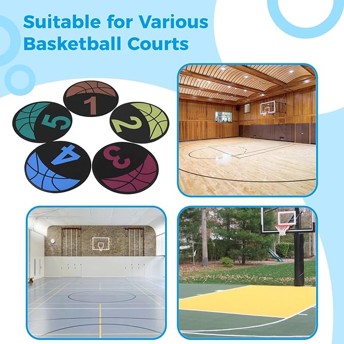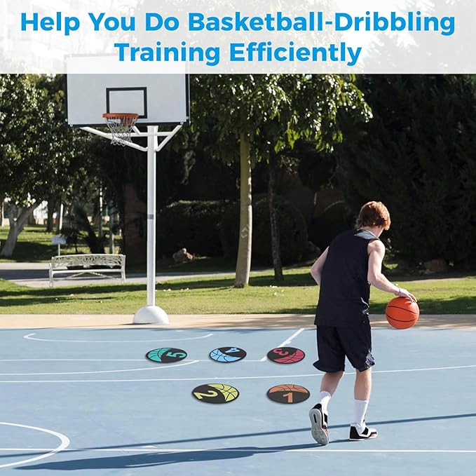 - 【Enhance Your Basketball-Dribbling Skill】Try to elevate your basketball-dribbling skill with our flat round numeric floor markers featuring numbers from 1 to 5. These markers can help you improve your dribbling technique and enhance ball control. They offer easily distinguishable appearances for efficient practice