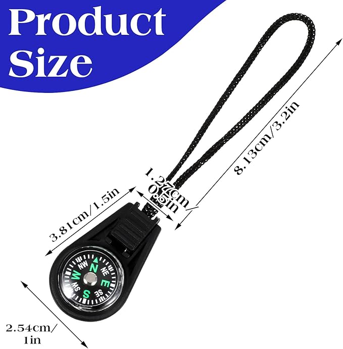- Wild necessities: the compass provides a general direction for your field activities, the compass can be hooked on your jacket to prevent it from being lost, it is suitable for connecting outdoor backpacks, key chains, and any conventional zippers, help you find your way home quickly