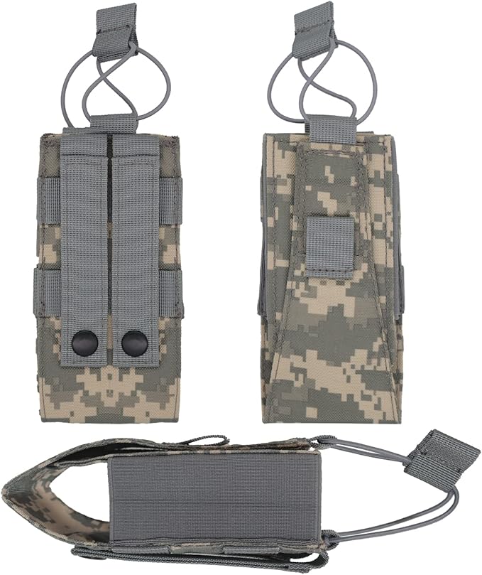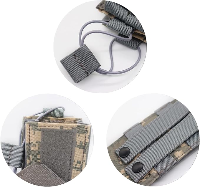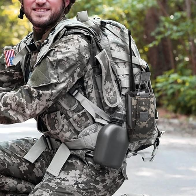 - 🔫Molle system: Molle radio pouch can be easily connected to any molle-compatible tactical vest, backpack, belt and other equipment.⚠Note: The American flag patch is pasted on the inside of the radio pouch and can be peeled off and pasted on the outside when using it.