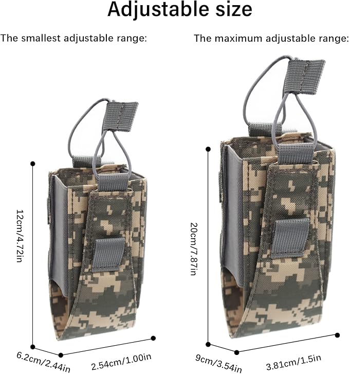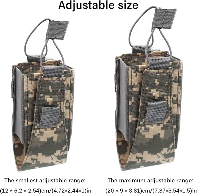 - 🔫Adjustable design: The radio can be securely fastened to the radio holder with an adjustable elastic cord and hook & loop, the detachable while hook & loop inside the bag can be adjusted to tighten the radio at different height, protect the radio from rubbing and prevent the radio from falling.