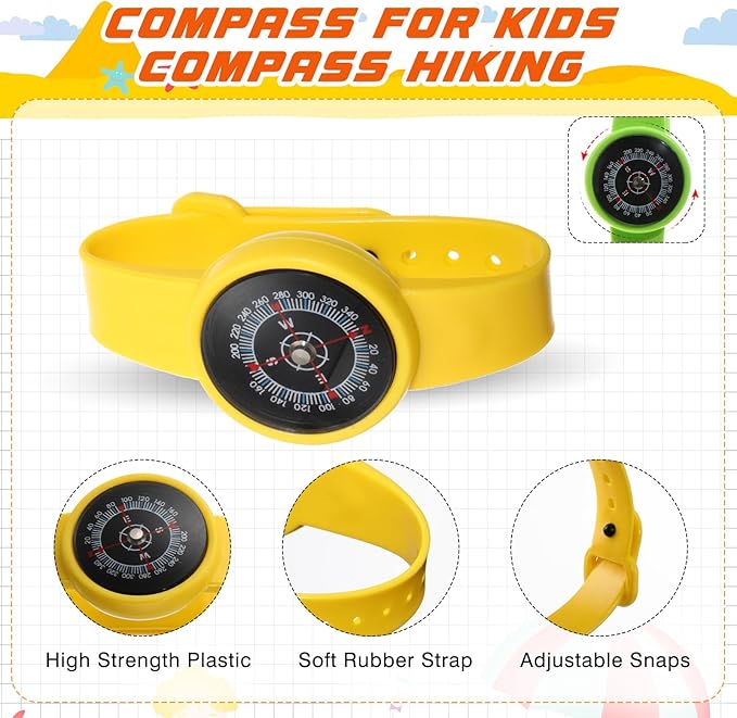 - Soft Rubber Material: made to be kid friendly, the watch compass is constructed from soft rubber; This not only makes it comfortable for children to wear for extended periods but also sturdy enough to withstand the rigors of outdoor adventures; It's lightweight, flexible, and durable, nice for little explorers