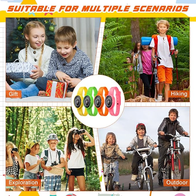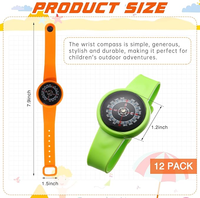 - Colorful Collection: the package includes 12 watch compasses in a vibrant array of colors: pink, yellow, orange, and green; These multiple color options not only add a fun style to this educational tool but also make it easy to match with any adventure outfits