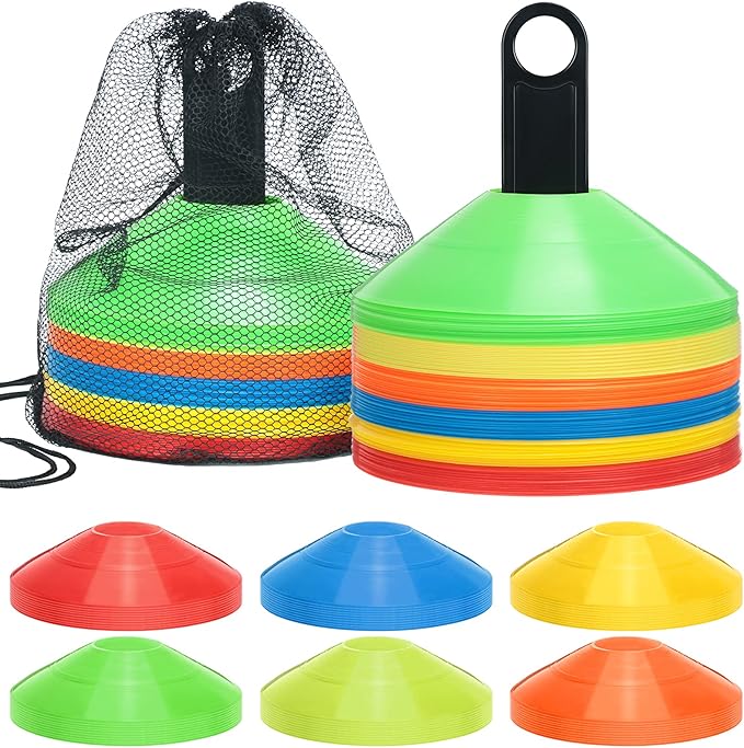 - High Visibility Colors: bright, easy to see sport football cones set includes 6 colors, enough for your different training or gaming needs without fading; The color of our soccer cones is more vivid than ordinary disc cones; Ideal gift ideas for kids, coaches, athletes or other people who loves sports