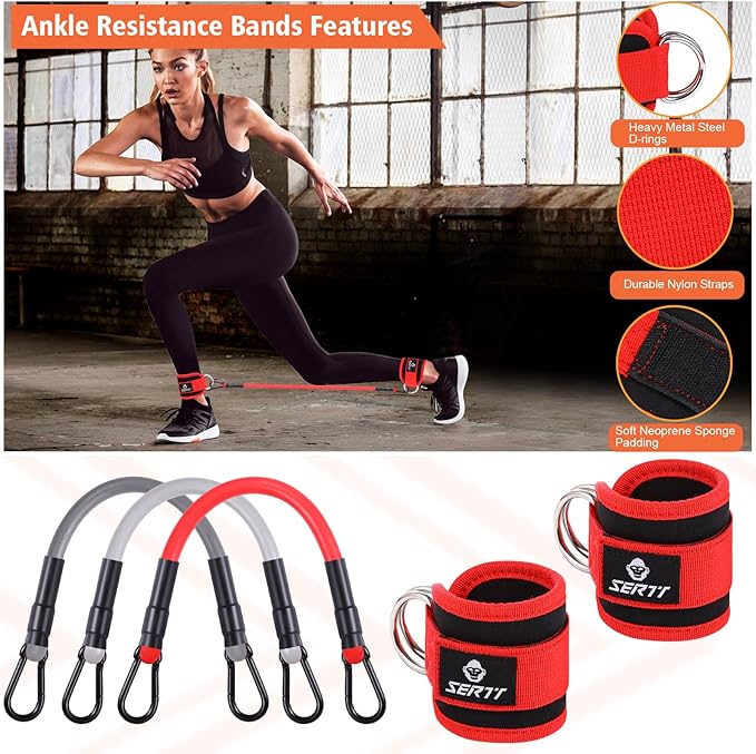 • Ankle Resistance Bands with Cuffs Features: The ankle resistance bands with 3 resistance levels (10/20/30 lbs) that allow you to customize the intensity of your workout. The ankle straps are equipped with straps that can be easily adjusted to fit different ankle sizes to ensure a secure and comfortable fit. This combination provide a versatile solution for working out various muscle groups, including the legs, buttocks, and hips.