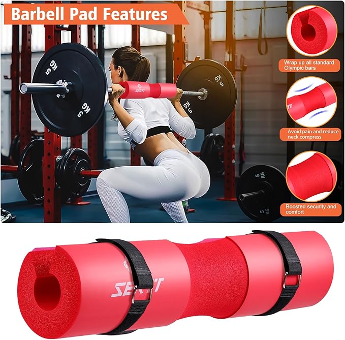 • Gym Barbell Pad Features: SERTT gym bar pad is made of high-quality, high-density foam which has been designed to distribute weight evenly across your shoulders and relieve you of any neck pain during squats.