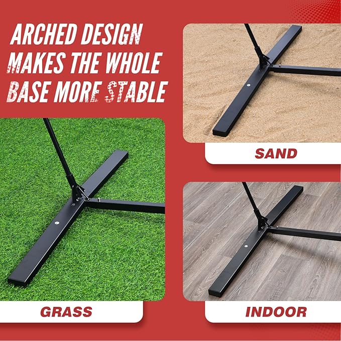 - Sturdy Frame: The base frame is made of powder-coated steel with a push-button locking system, the weighted base is combined with the arch structure, making the set more firm, and it can prevent dumping; Without guidelines, sandbags, and ground stakes when using it. Easy to install in minutes and can be used indoors, on the lawn, on concrete, and at the beach.