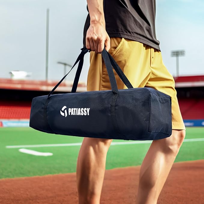 - Sturdy Construction: Made with a premium steel frame, it ensures durability and stability during intense games. The high-density Tetoron netting is more strong than nylon and PE mesh, ensuring that no ball escapes, allowing for uninterrupted training sessions. The upgraded 420D Oxford side sleeves enhance the net's strength and make it easy to attach the netting securely.