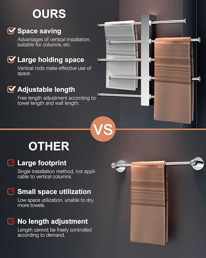 - Simple yet Modern Design: Smooth finished chrome adjustable towel bar with S hooks adds a sense of modern and stylish style to your home. And ZUEXT bath towel rack added 18/8 Chromium/Nickel content to protect against corrosion and rust, suitable for humid environments such as bathroom, kitchen, laundry room, patio, hotels and spas.