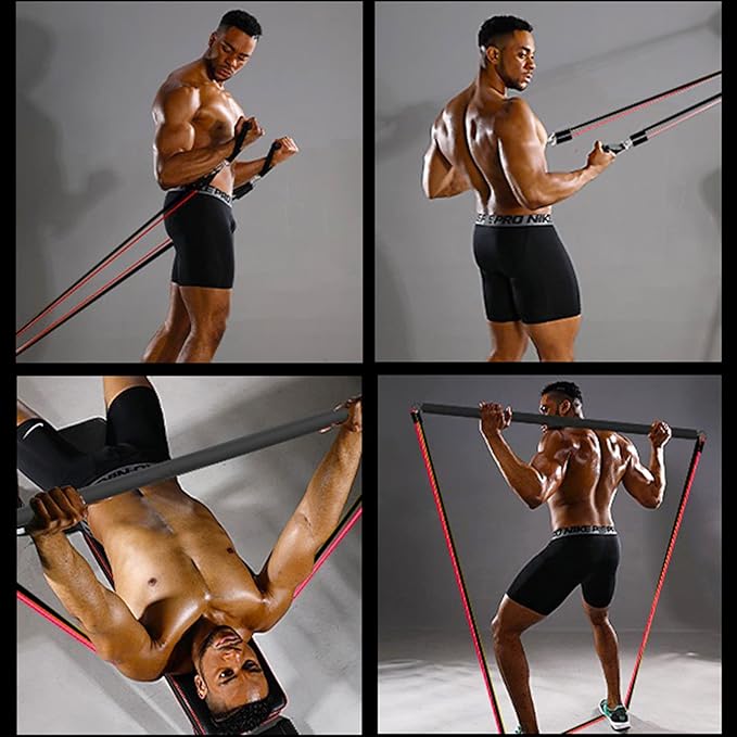- 【Exercise Whenever You Want】The pilates band can be used to perform many different types of exercise (Full Body Workouts), build muscle, lose weight and shape your arms, abs, legs and glutes while also getting cardio in.Lightweight, detachable, and easy set-up design. this pilates stick is easy to store and carry. it can be used at home, in the gym, park, garden, or at your office. You could also take it when you travel.