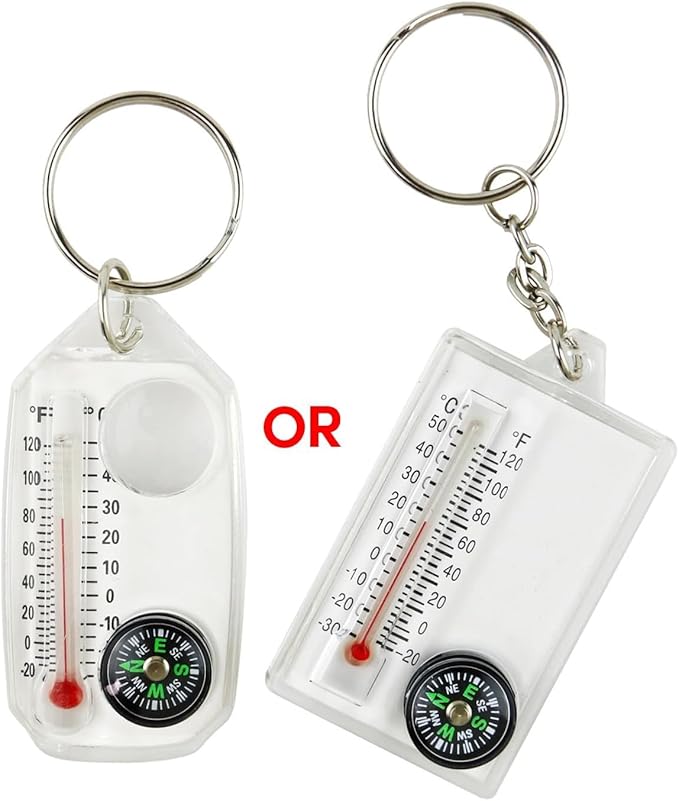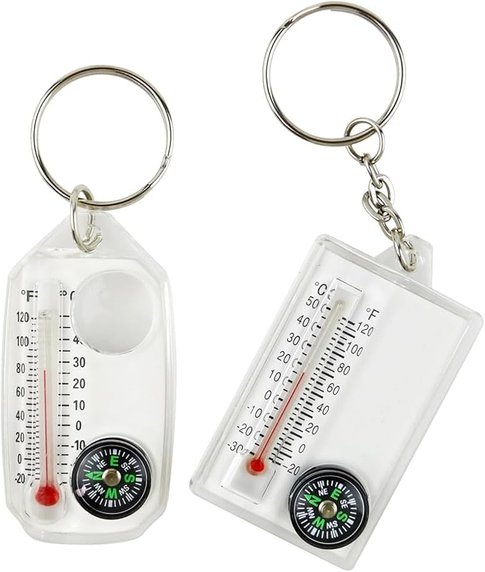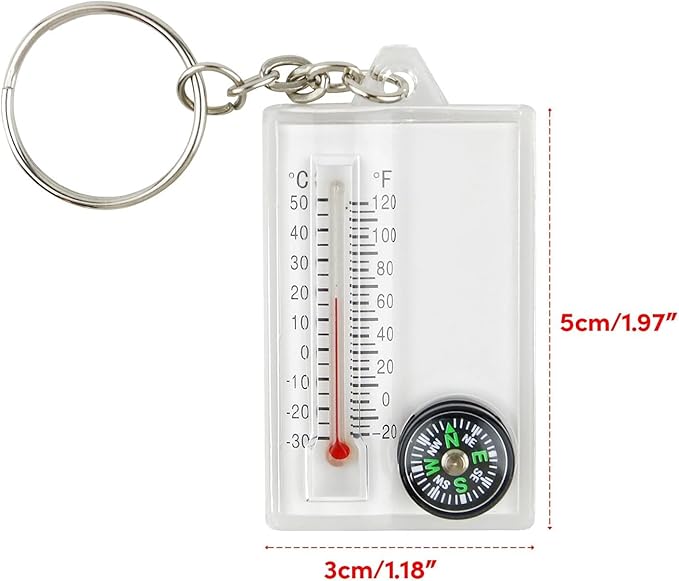 - INCLUDES THERMOMETER: In addition to compass functionality, this keychain also incorporates a small built-in thermometer to conveniently check ambient temperatures.