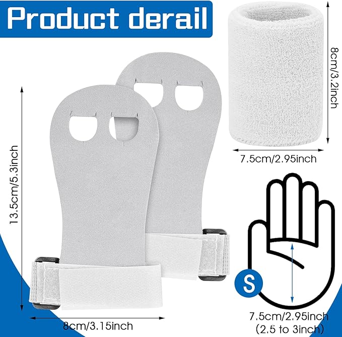 - Grips & Wristbands Size: the gymnastic bar grips are about 8*13.5cm/3.15*5.3inch, adjustable, suitable for most kids and teens; The athletic wristbands is about 7.5x8cm/2.95x3.2inch, which are soft and elastic, can prevent wrist abrasion.