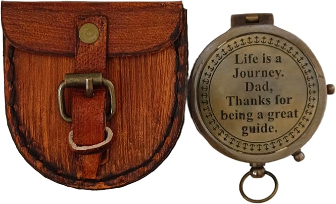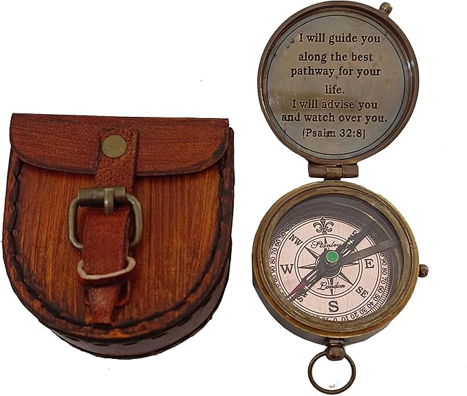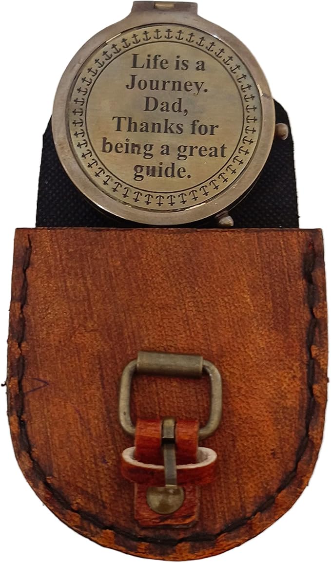 2 Inch Brass Pocket Compass With Leather Case