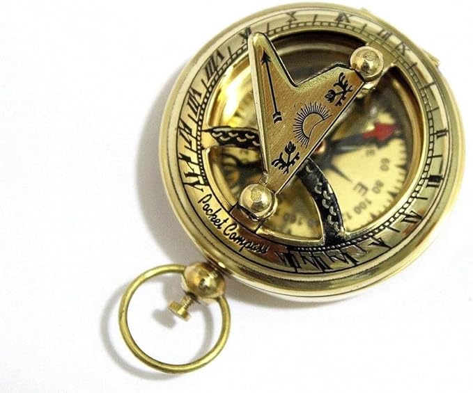 - Experience the thrill of navigating through uncharted territories with our sleek and handy Pocket Sundial Compass. This elegant compass combines vintage charm with modern functionality, making it an ideal gift for camping and hiking enthusiasts.