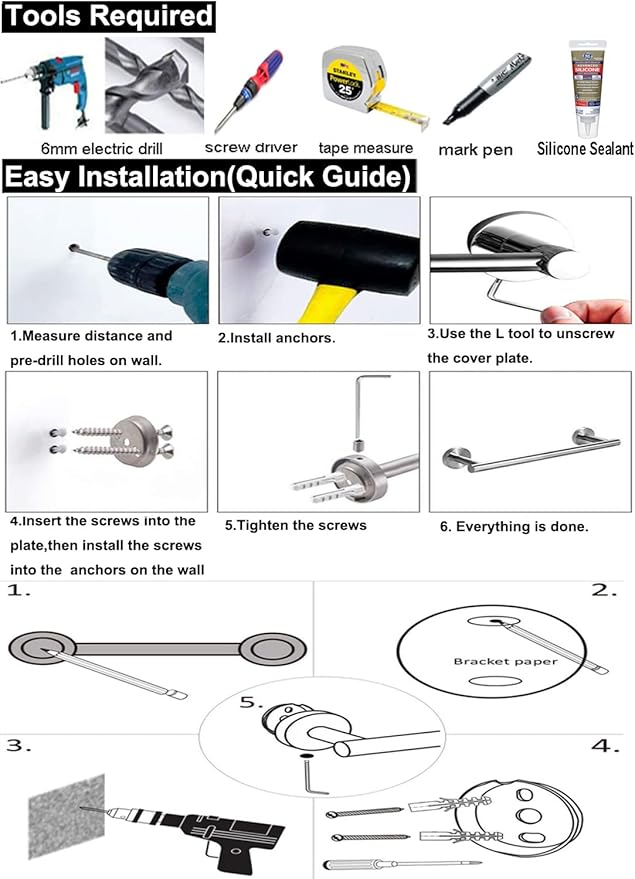- Easy to Install: Screws wall mounted installation, but not limited to tile and drywall, suit for your toilet, bathroom, washroom, powder room, kitchen...Comes complete with instructions and hardware for easy mounting.