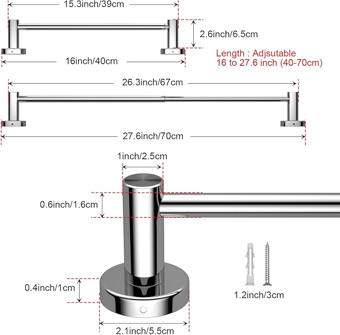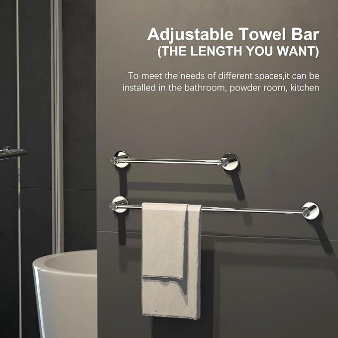 - Retractable Size & Material: 2 pack retractable towel bar from 16 to 27.6 Inch, to meet the needs of different spaces, you can install it at any length. 1 inch(25mm) tube diameter. Made of SUS304 stainless steel polished chrome finished for a lasting strength and quality.