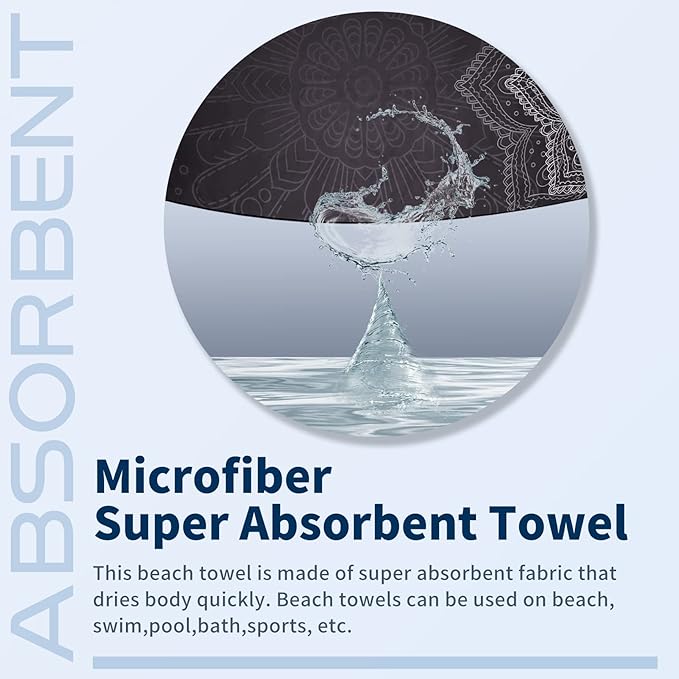 - Sand Free and Super Absorbent : Super soft, the beach towel instantly absorbs water when it touches the water.Whether you are on holiday at the beach or swimming pool ,it will bring you a comfortable feeling.Our beach towels are sand free and can be kept clean at any time