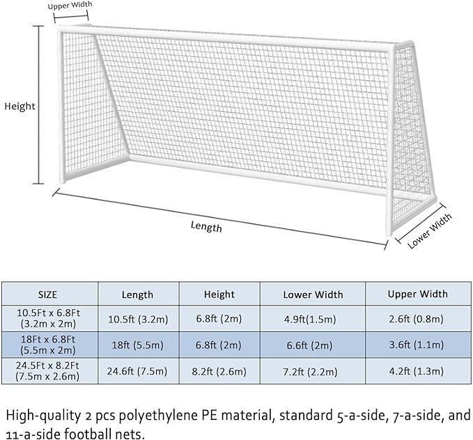 - 【Great Size】18 Ft x 6.8 Ft, standard 7 a side football goal net for the game, uniformly sized grid, don’t worry about falling out of the goal