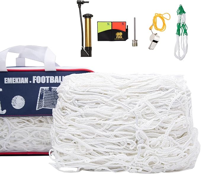 - 【The Package Includes】2 x football nets, football nets carry bag, football pumps, ball needle, red and yellow referee cards, football ball pockets, football referee whistle. Set allows you to have 2 nets at once, no need to wait for the again, you can enjoy the joy of sports faster