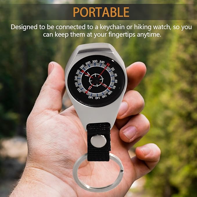 - Lightweight and Portable: Made from lightweight metal, these compasses are easy to carry and won’t weigh you down. They’re designed to be attached to a keychain or a hiking watch, so you can always have them at hand.