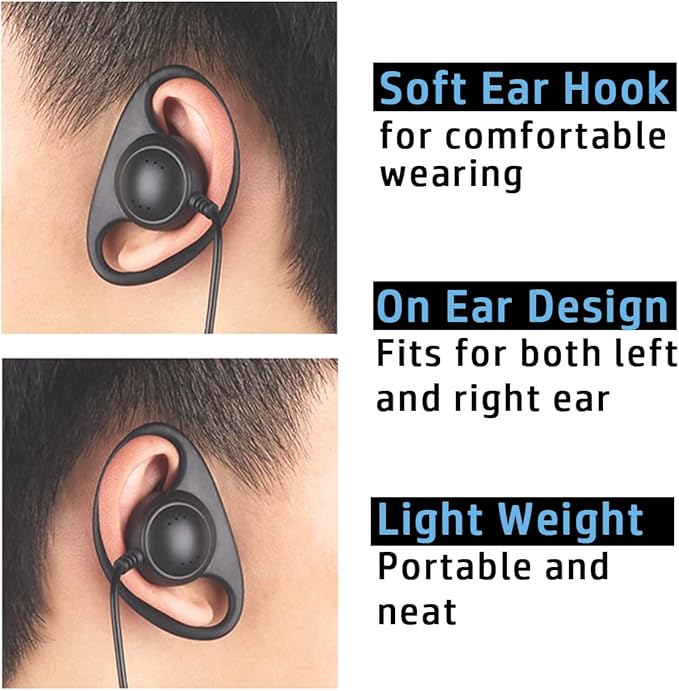 - D-shape earpiece with in-line microphone and push-to-talk for your radios, keep your communications smooth and clear during group outdoor activities such as hiking, camping, jogging, running, hunting, camping, fishing or work-related projects, and also good for business use such as retail, F&B, hospitality, event management, warehouses and offices