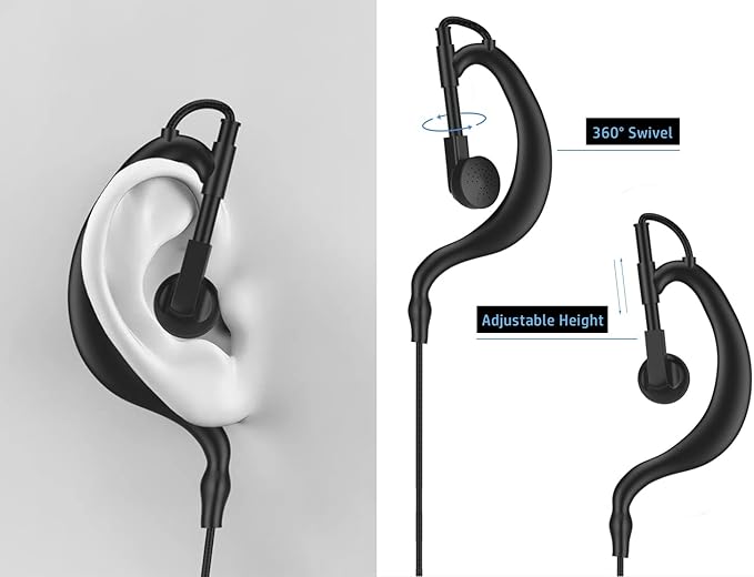 • Made of durable materials: PU cable, metal 2.5mm single pin audio plug, swivel metal collar clip, soft D or G type ear hanger