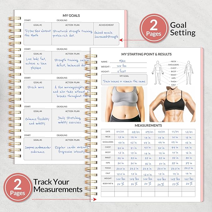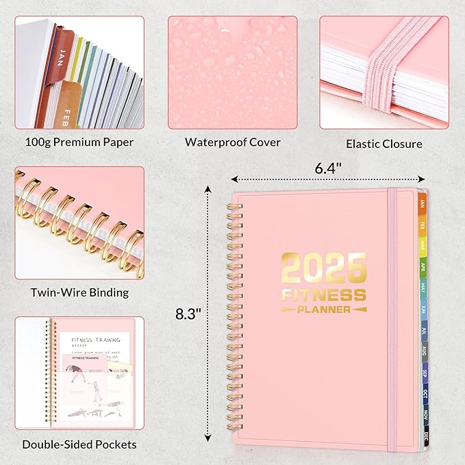 - Compact and Practical - With an A5 size (6.4" x 8.3") which makes it easy to stick in your gym bag. It includes elastic strap and double-sided pocket for convenient organization. With 100gsm premium paper, enjoy a smooth writing experience. Fitness planner 2025 includes Starting Point & Results-2Page | Goal Setting-2 Page | Track Your Measurements-2 Page | Monthly Page-30 Page | Fitness Log-53 Page | Weekly Page-53 Page | Notes-17 Page. Keep you organize and fit throughout 2025. Easy to use