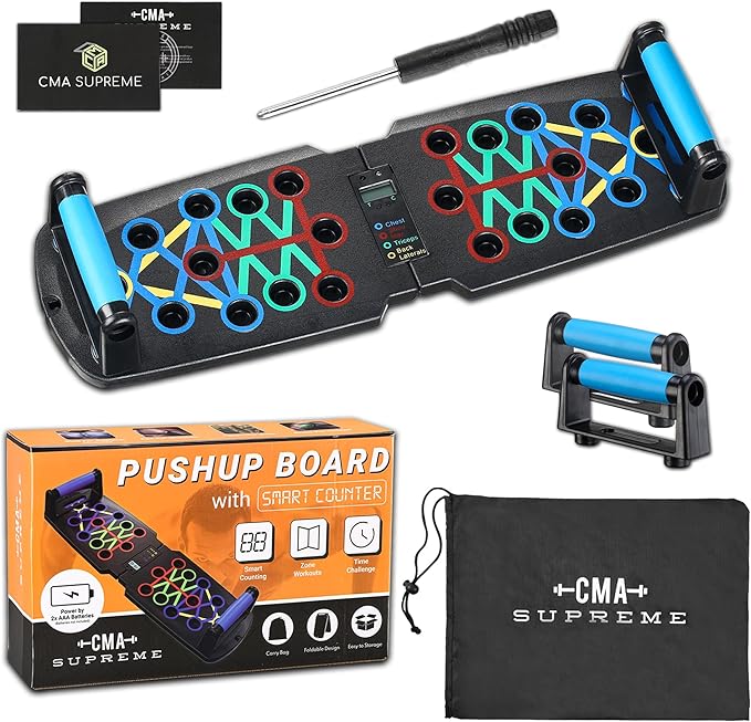 - [FOLDABLE AND EASY TO STORE]: Unlike similar products on the market, the CMA Supreme push up challenge board features a fully foldable design and includes a convenient carry bag, being your ideal travel companion. An excellent choice for office, home gym, hotel room or while on the go!