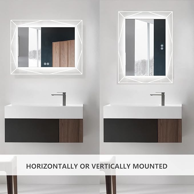 - * Super Functions. Touch Button, Anti-fog, Dimmable, Vertical & Horizontal Mount. You can control by touch button on the mirror or by the wall switch.
