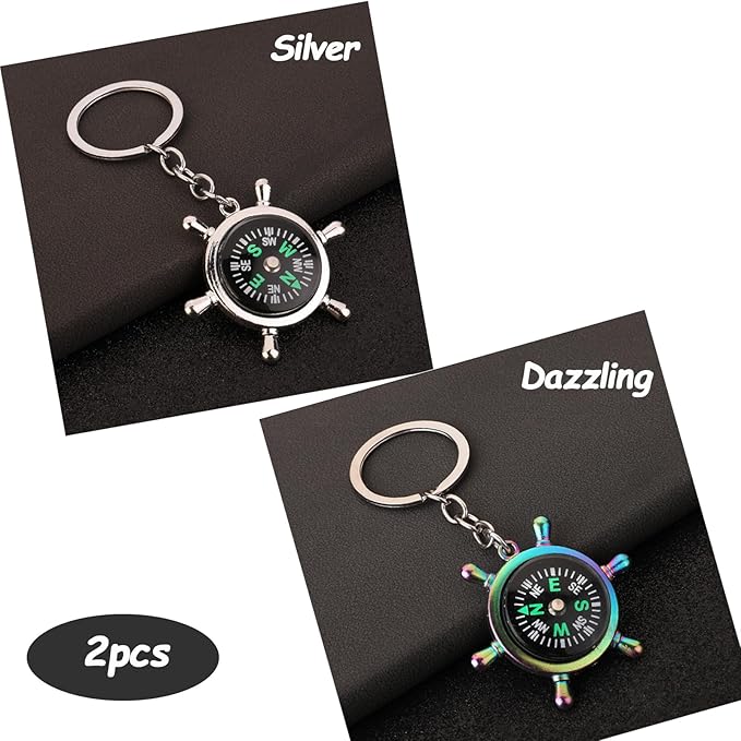 - Package include 2pcs compass keychain, 1pc is silver, 1pc is dazzling color, very cute and pretty.
