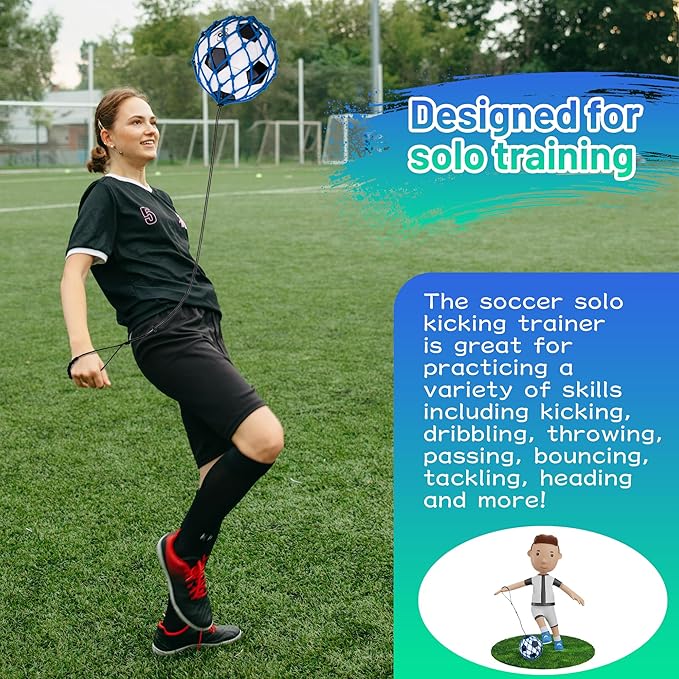 - VERSATILE: Fits most soccer balls, including size 3, 4 and 5 soccer balls. Suitable for indoor and outdoor soccer training including courtyards, soccer fields, school playgrounds etc. Help you master various kicking techniques.