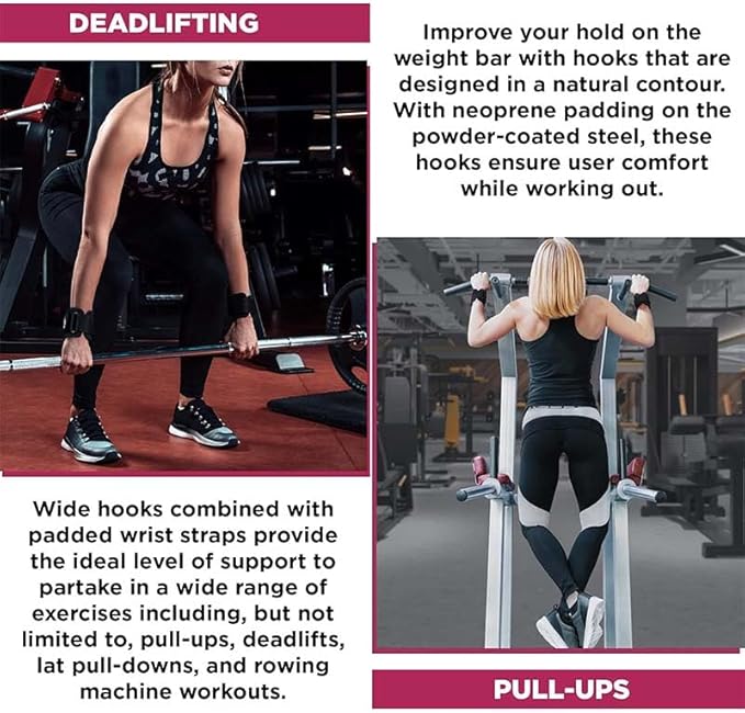 - Design and material: This weightlifting hook is made of high-strength materials to ensure that it can withstand the weight pressure when lifting weights. Its unique design allows the grip hook to be easily put on the barbell or pull-up crossbar to provide stable support.