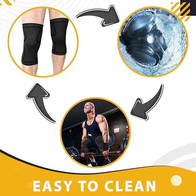 - Knee Braces for Active Lifestyles: our gym accessories also include 1 pair of nylon knee braces, designed with both men and women in mind; These knee braces seamlessly integrate into your active lifestyle, providing pain relief without trapping sweat underneath; The black color of the knee brace aids in maintaining a cohesive and stylish look with the rest of your gym gear