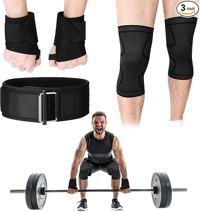 - Complete Gym Accessory Collection: this gym set brings you an expertly compiled collection of essential fitness accessories, offering a comprehensive solution for all gym enthusiasts; The set contains 1 weight lifting belt, 1 pair of gym wrist wraps, 1 pair of knee braces, ensuring that your gym routine gets the support it requires