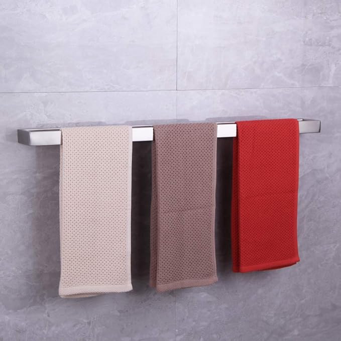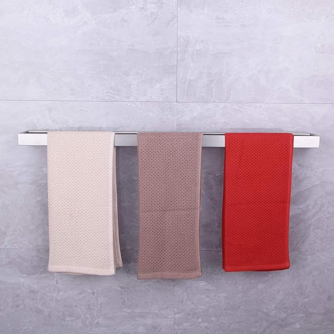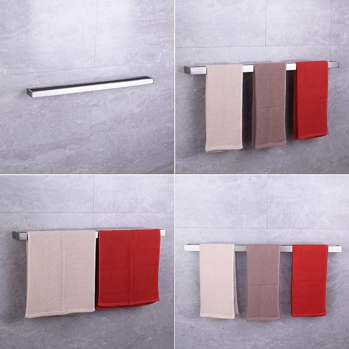 - SPACE-SAVING TOWEL BAR - The towel bars are a handy place to store your towels that keep your towels dry and within reach. You can mount it to bathroom wall, sheetrock walls or wood door.