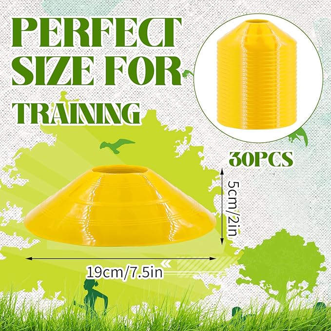 - Value package: you will receive 30 pieces yellow disc cone with sturdy mesh tote bag with drawstring keep cones organized and ease of storage and portability. Sufficient quantity to meet your daily sports training needs.