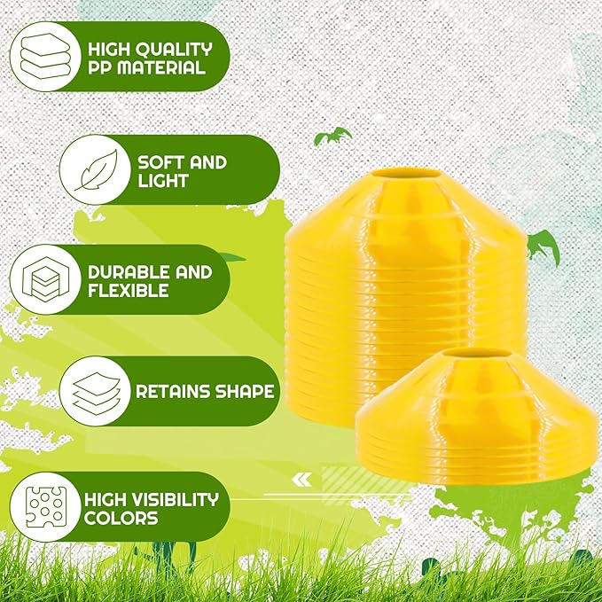 - Wide application: lasting soccer cones is primarily used for flexibility training for obstacles designs, Ideal for soccer, football, baseball, basketball, skating, skateboard, training equipment, coaching, drills. while still serving as flexible and durable markers for boundary lines, training courses, and drills.