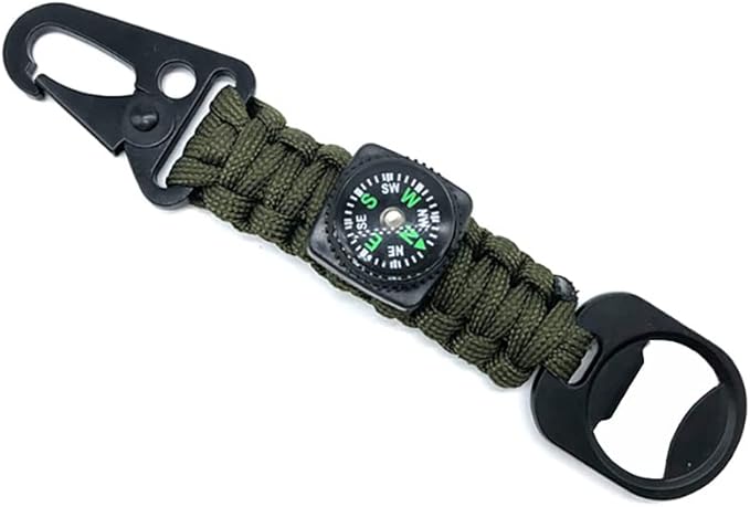 - MULTI-FUNCTIONAL KEY CHAINS: 5 in 1 Design, the multifunciton key chains can be use as carabiner, compass, paracord, bottle opener and keyring.