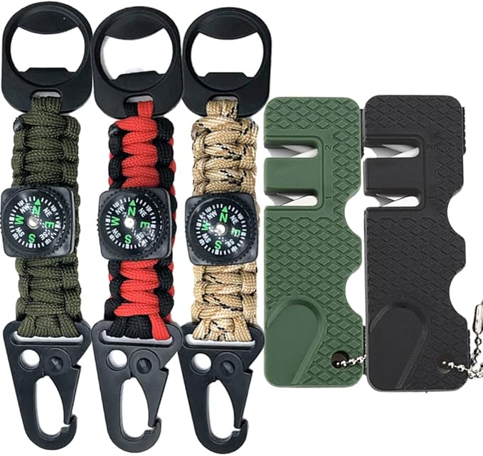 3pcs 5-in-1 Kids Compass Keychain and 2pcs Knife Sharpener