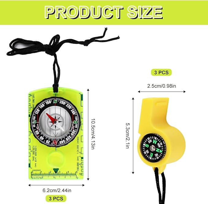 - Package Content: You will receive 3 pieces of camping compasses with detachable lanyards and 3 pieces of 2-in-1 camping whistles with lanyards. They are enough for your needs, providing precious position and direction when camping or hiking, thus you won't worry about getting lost.