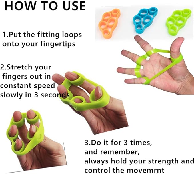 • High Quality: The three-piece finger exercise set is constructed with a premium silicone that is odorless and latex-free, it will not damage your hands and fingers. They are safe, washable and not easy to tear. Their strong design enable you to use them continuously without restraint and Enjoy its long lasting benefits.