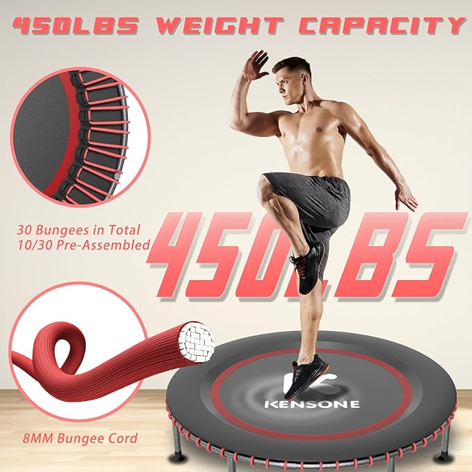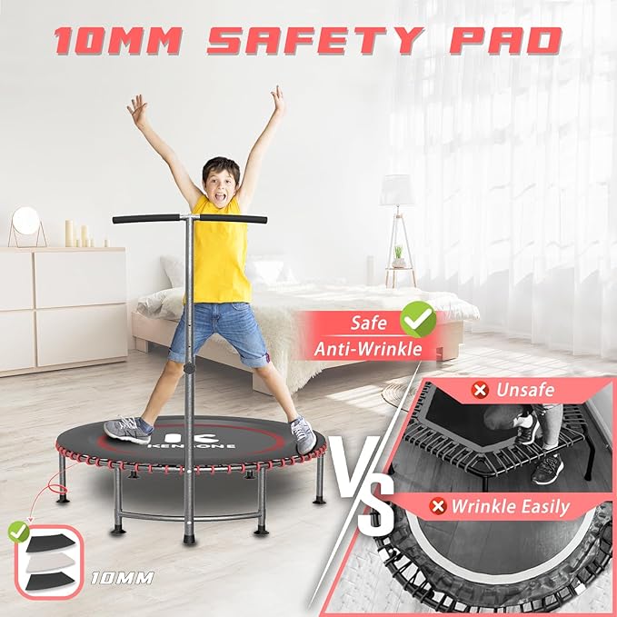 - 【SAFETY PAD PROTECTION】KENSONE mini fitness trampoline comes with a 10mm safety pad which is anti-wrinkle and more protective.