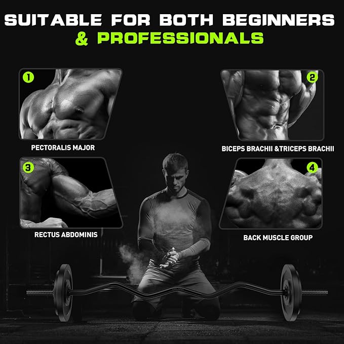 - EXERCISE MULTI-POSITION MUSCLES: Our EZ curl bar is helpful for biceps, triceps, abdominal muscles, etc. You can also cooperate with the fitness bench for training, and assist in the exercise of shoulder, back and leg muscles.