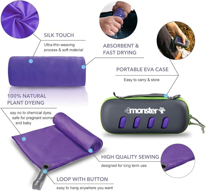 4Monster Camping Towel Super Absorbent-Quick Dry Microfiber Towel