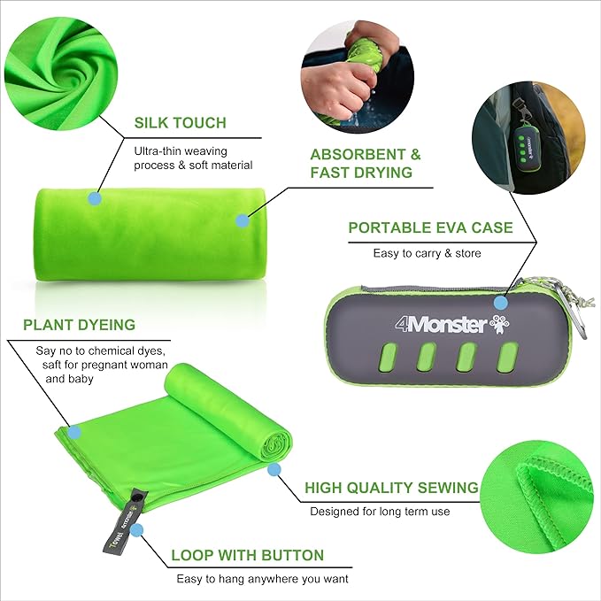 4Monster Camping Towel Super Absorbent-Quick Dry Microfiber Towel