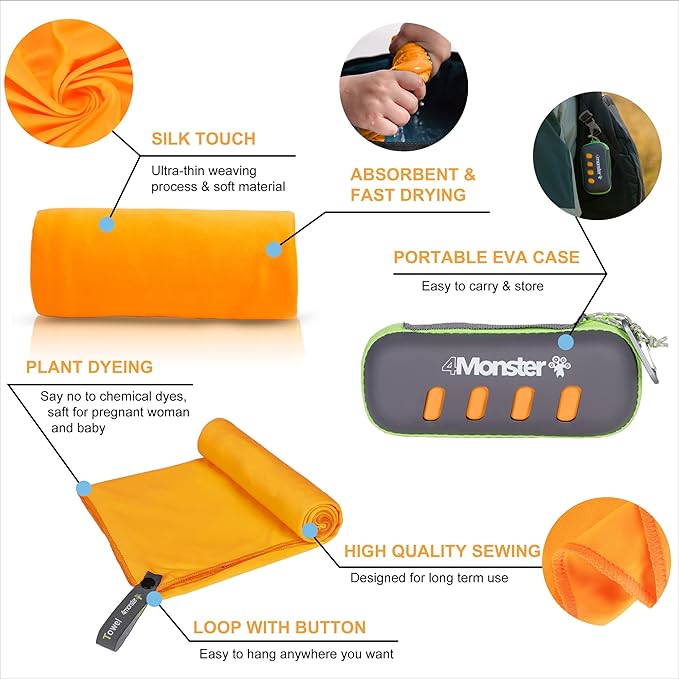 4Monster Camping Towel Super Absorbent-Quick Dry Microfiber Towel