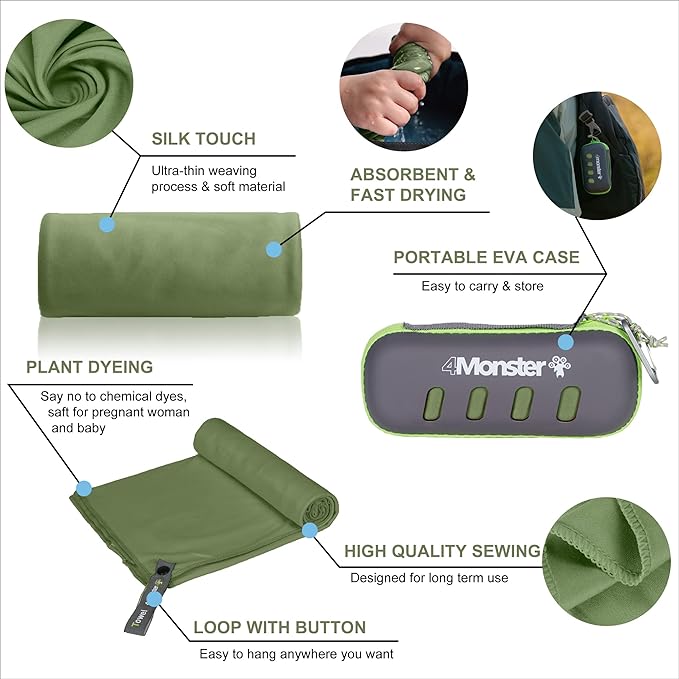 4Monster Camping Towel Super Absorbent-Quick Dry Microfiber Towel